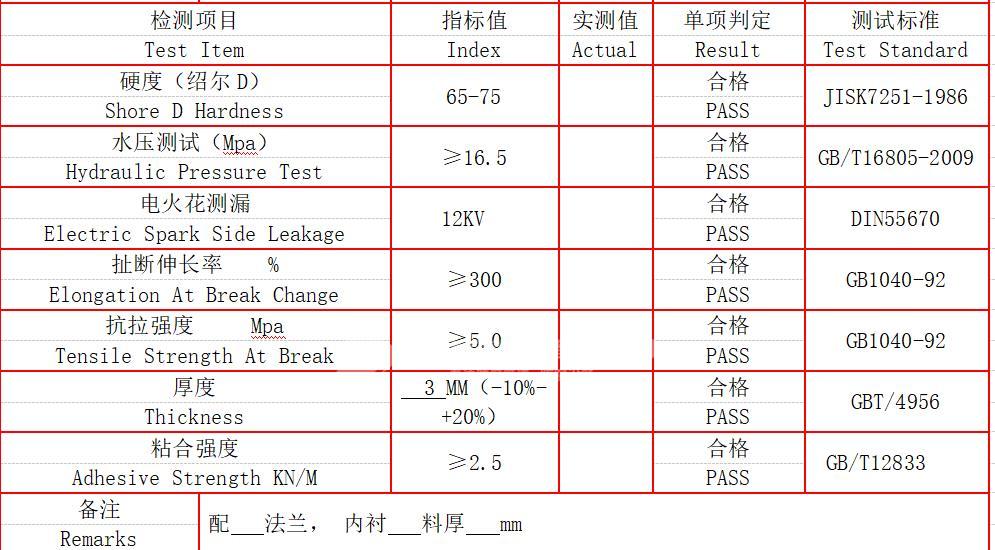 我公司生產(chǎn)的鋼襯塑管及管襯在生產(chǎn)制作完成之后,會根據(jù)相關(guān)執(zhí)行標(biāo)準(zhǔn)由檢測人員進(jìn)行廠內(nèi)質(zhì)量檢測,檢測合格后出具產(chǎn)品質(zhì)量檢測報(bào)告。那么鋼襯塑管及管件進(jìn)行產(chǎn)品質(zhì)量檢測都有哪些檢測項(xiàng)目呢?